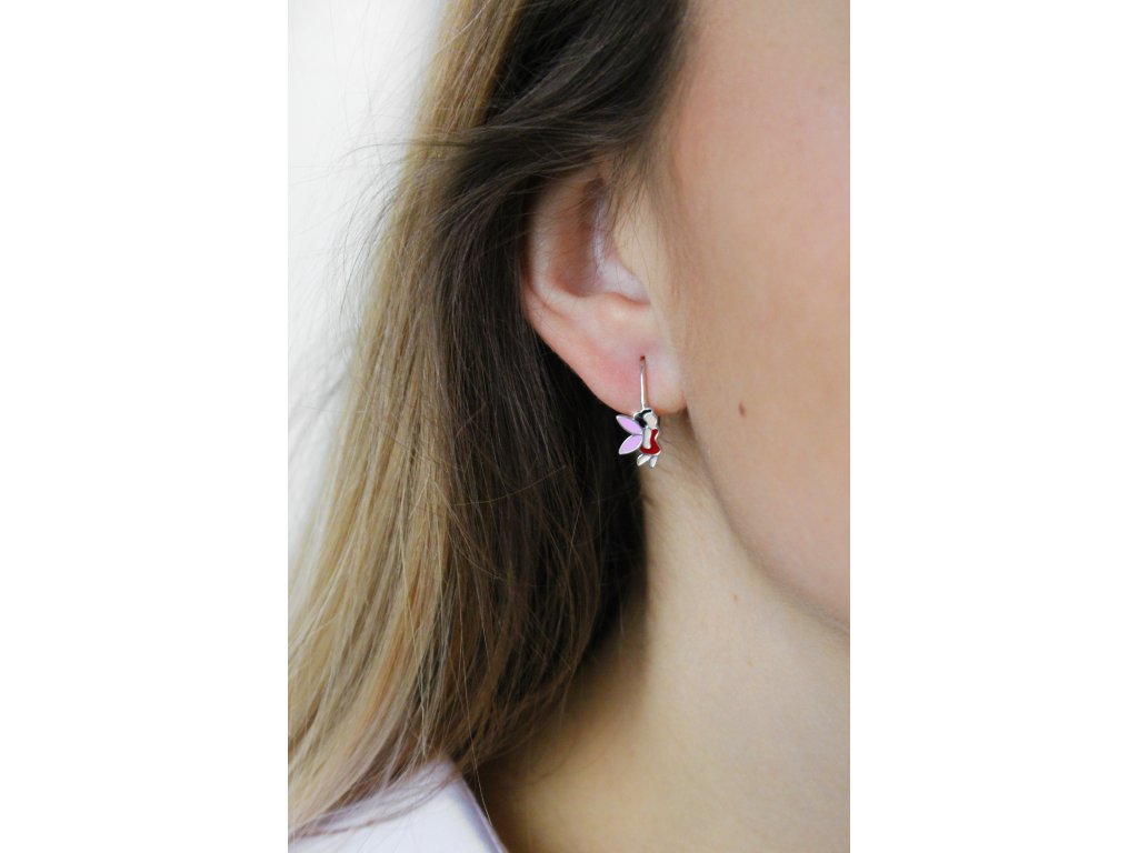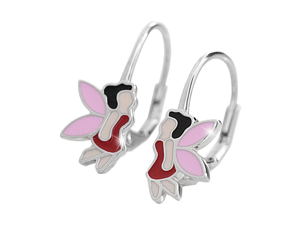 Stříbrné dětské náušnice klapky víla s barevným smaltem (Stříbro 925/1000)