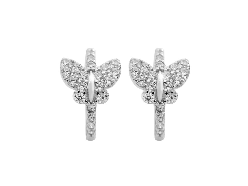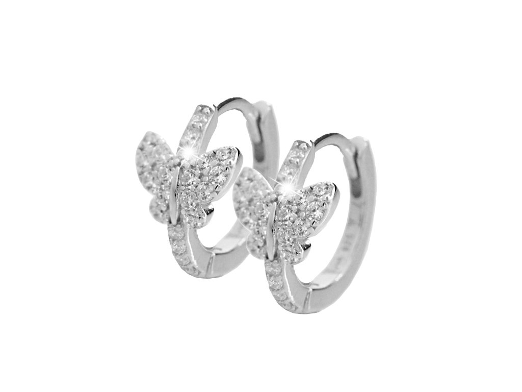 Stříbrné dětské náušnice kroužky motýlek s Kubickými zirkony Crystal (Stříbro 925/1000)