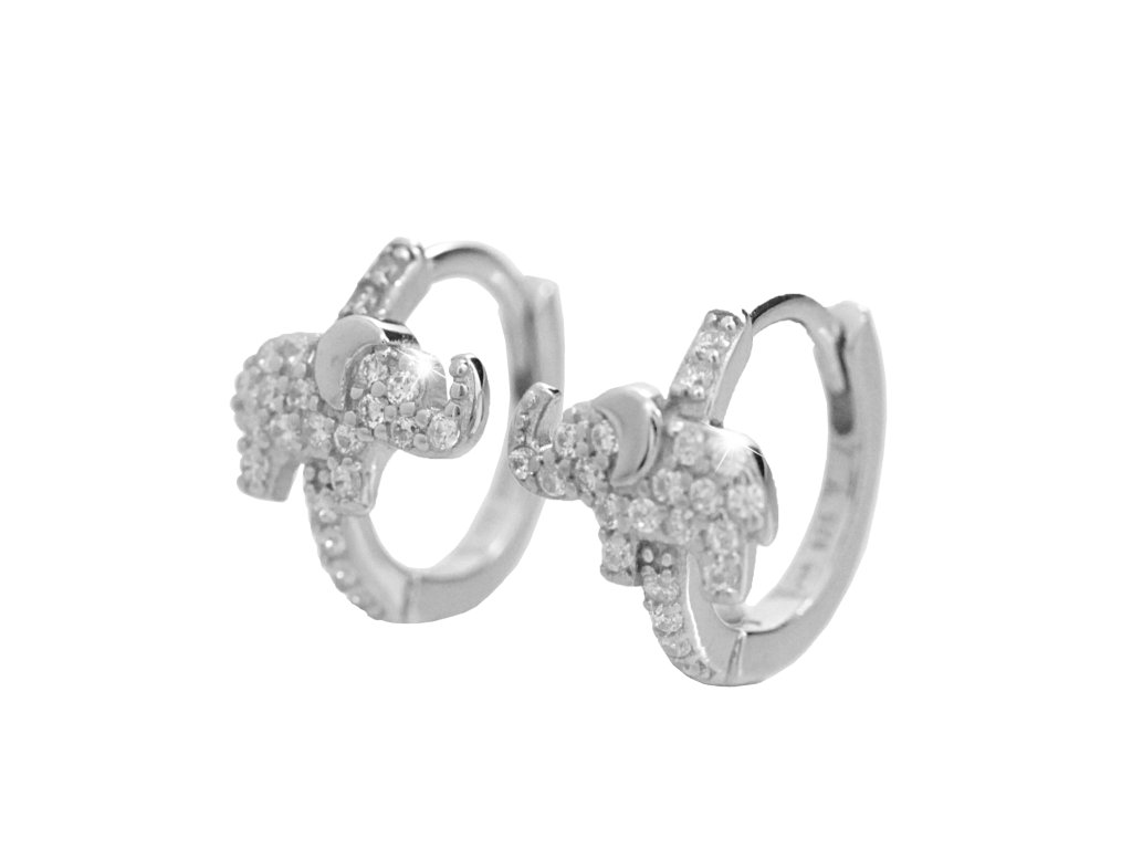Stříbrné dětské náušnice kroužky slůně s Kubickými zirkony Crystal (Stříbro 925/1000)
