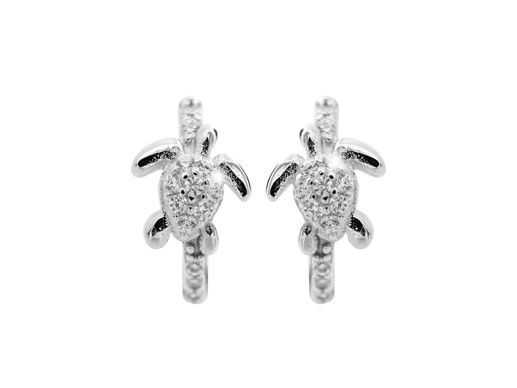 Stříbrné dětské náušnice kroužky želvička s Kubickými zirkony Crystal (Stříbro 925/1000)