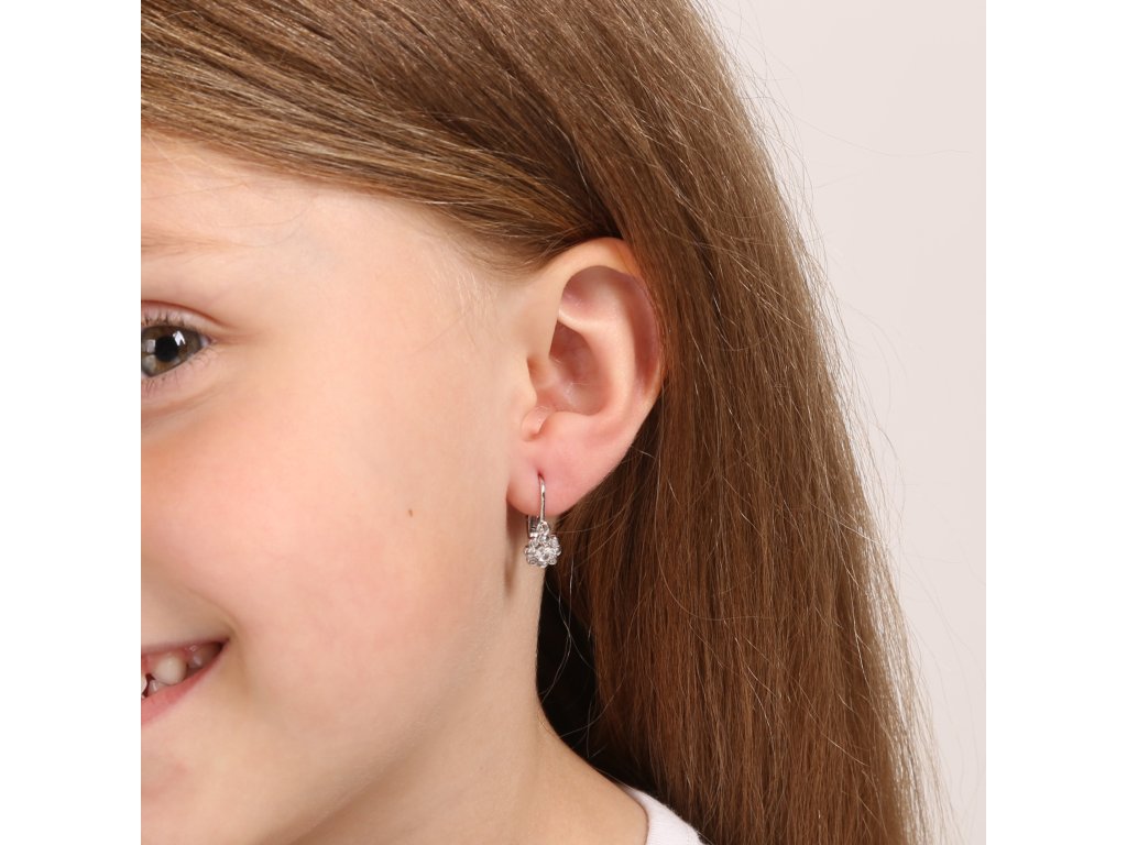 Parametry stříbrných dětských visacích náušnic se zirkonem bílá kytička 11174.1