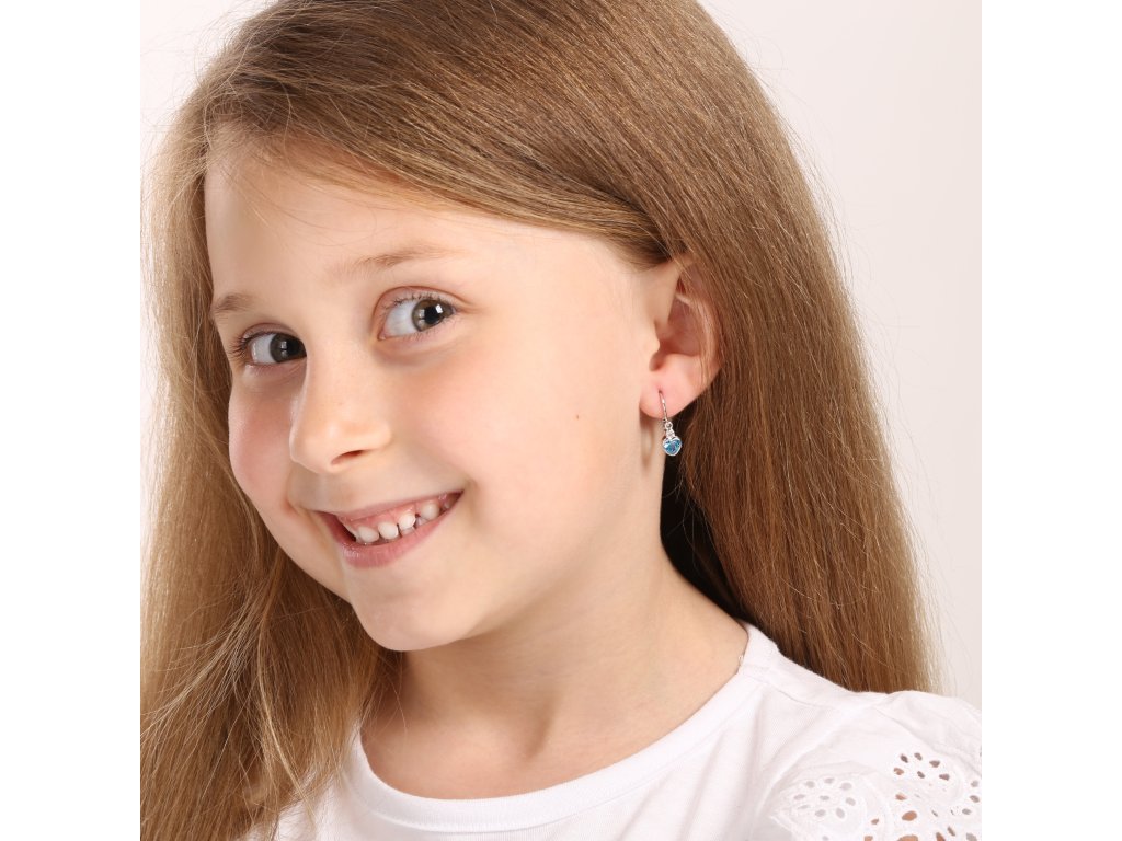 Parametry stříbrných dětských náušnic visací se zirkonem modré srdce 11178.3