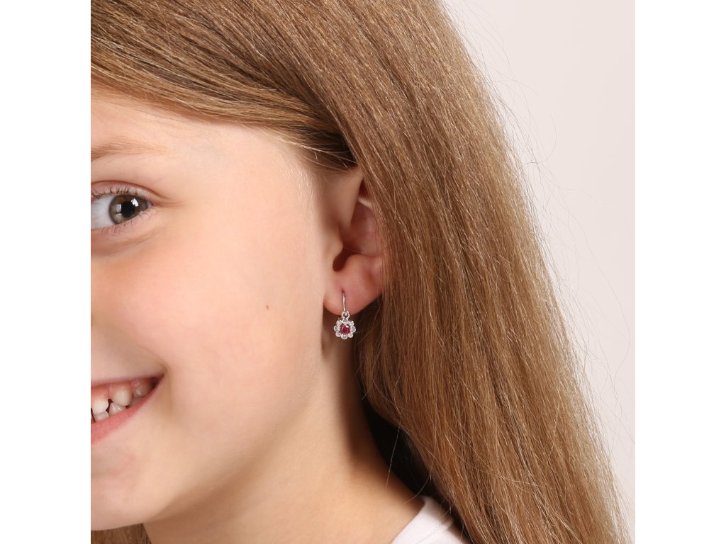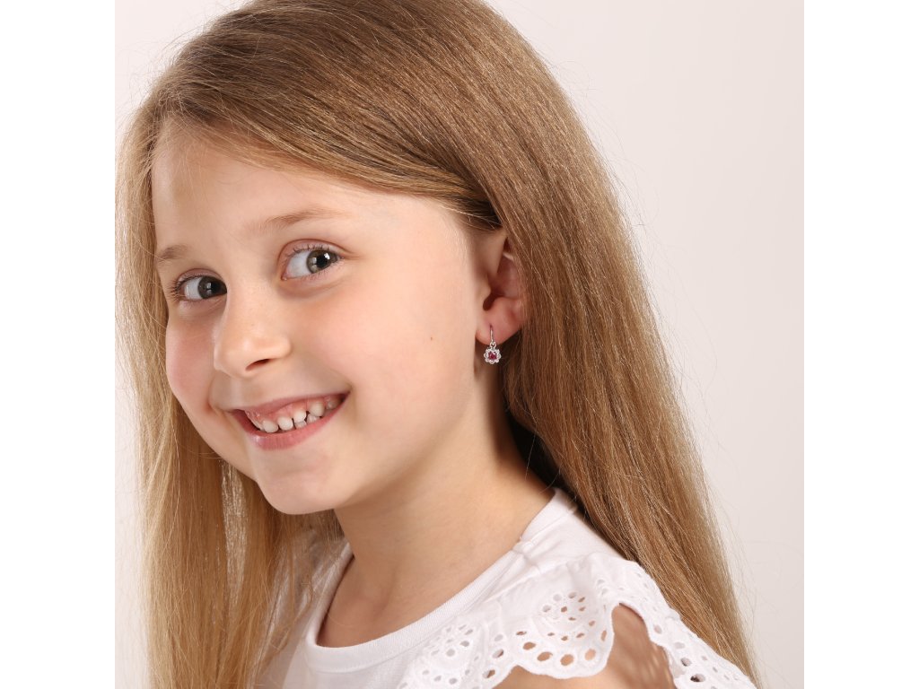 Parametry stříbrných dětských visacích náušnic se zirkonem růžová kytička 11174.3