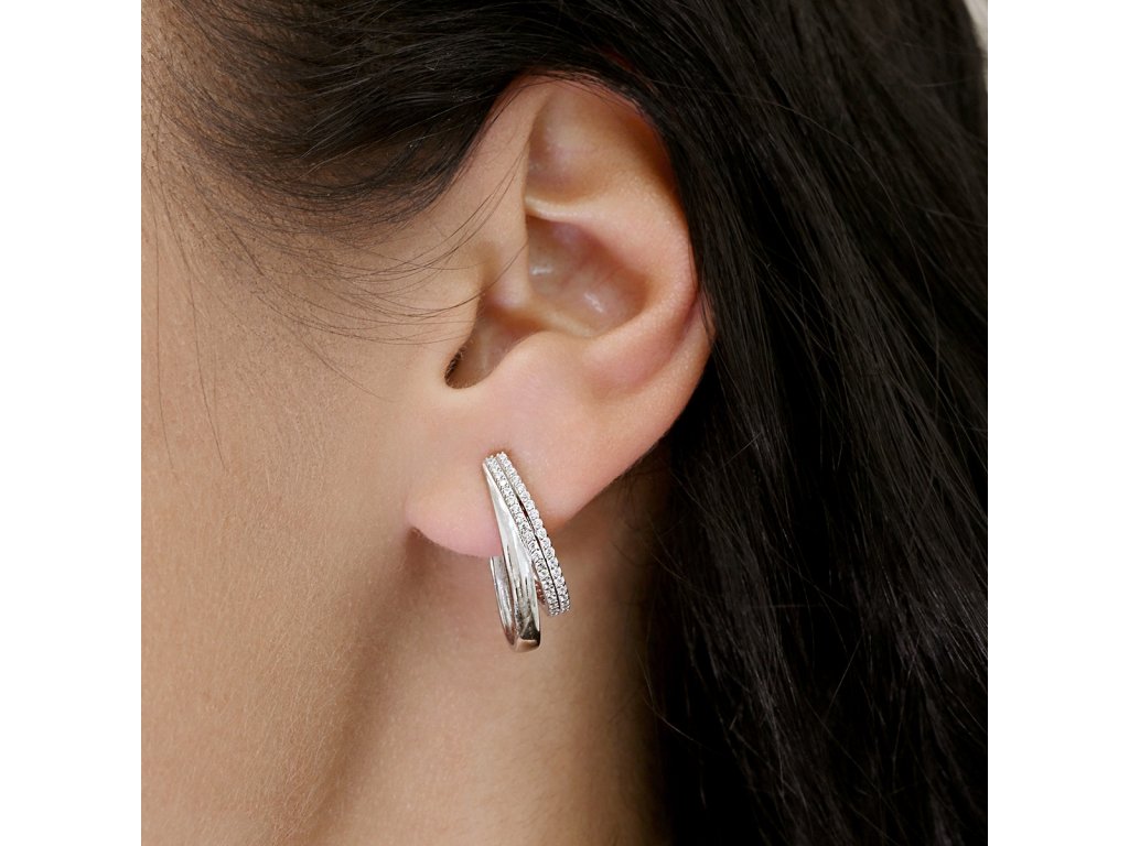 Náušnice jsou vyrobeny ze stříbra ryzosti 925/1000 s povrchovou úpravou rhodiem. Díky rhodiu je šperk nádherně lesklý a zároveň je chráněn proti zčernání a poškrábání. Náušnice jsou tvořeny dvěma kruhovými liniemi, z nichž jedna je hladká, druhá osázená třpytivými zirkony.