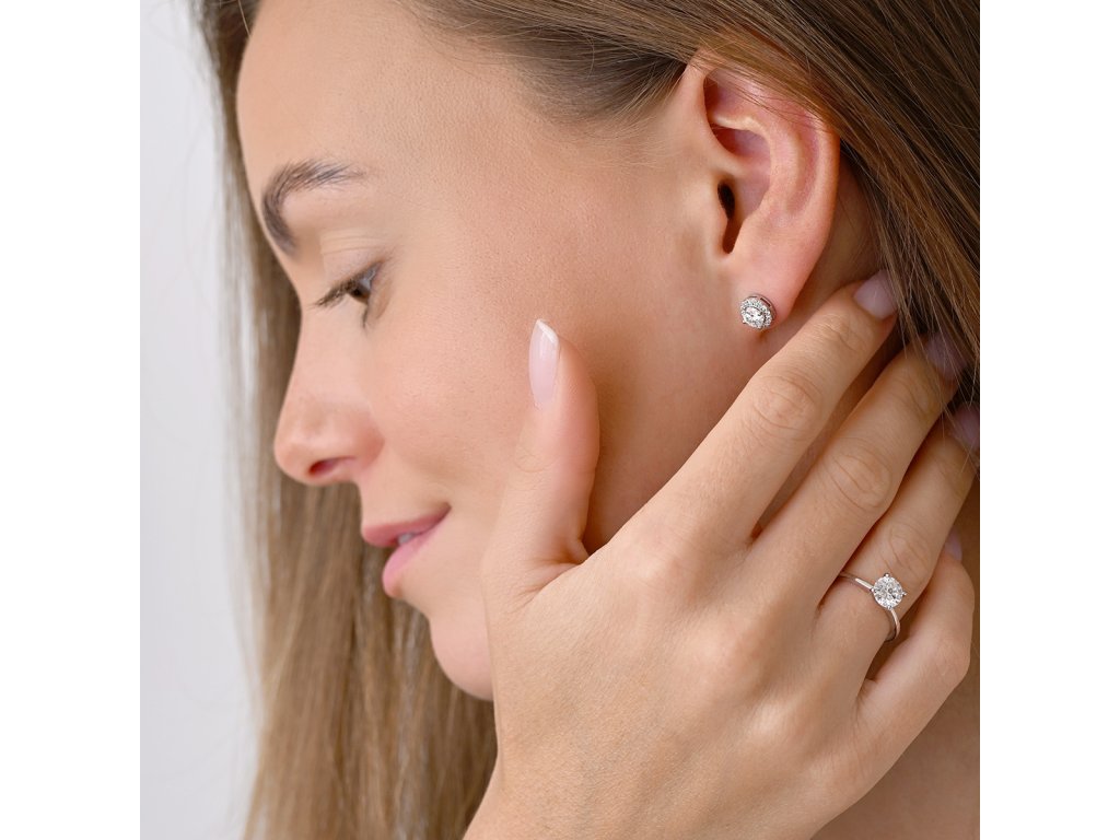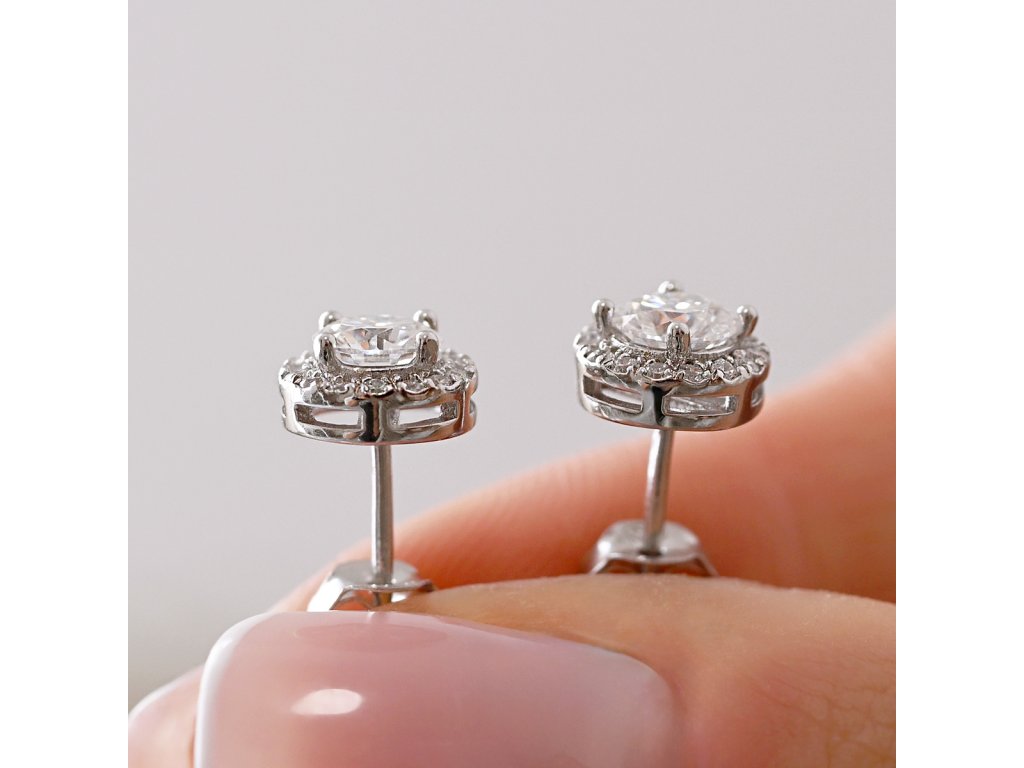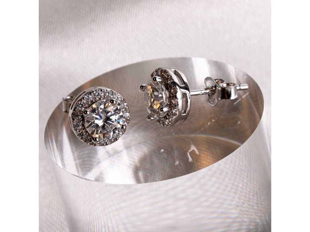 Jednoduchost, která oslní. Tyto stříbrné náušnice pecky jsou důkazem, že i minimalistický šperk může být hvězdou vašeho outfitu. Dominantní kulatý moissanit, obklopený dalšími drobnými moissanitovými kamínky, rozehraje při každém pohybu neuvěřitelnou hru světel.