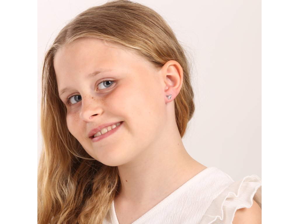 Náušnice ve tvaru motýlka volají jaro. Už cítíte vůni narcisů nebo slyšíte radostný zpěv ptáků?Náušnice pecky 11060.1 jsou vyrobeny ze stříbra o ryzosti 925/1000 a mají povrchovou úpravu z rhodia. Rhodium se postará o to, aby stříbro nezežloutlo, nezčernalo a nepoškrábalo se. Náušnice neobsahují žádný nikl, takže jsou vhodné i pro alergiky.
