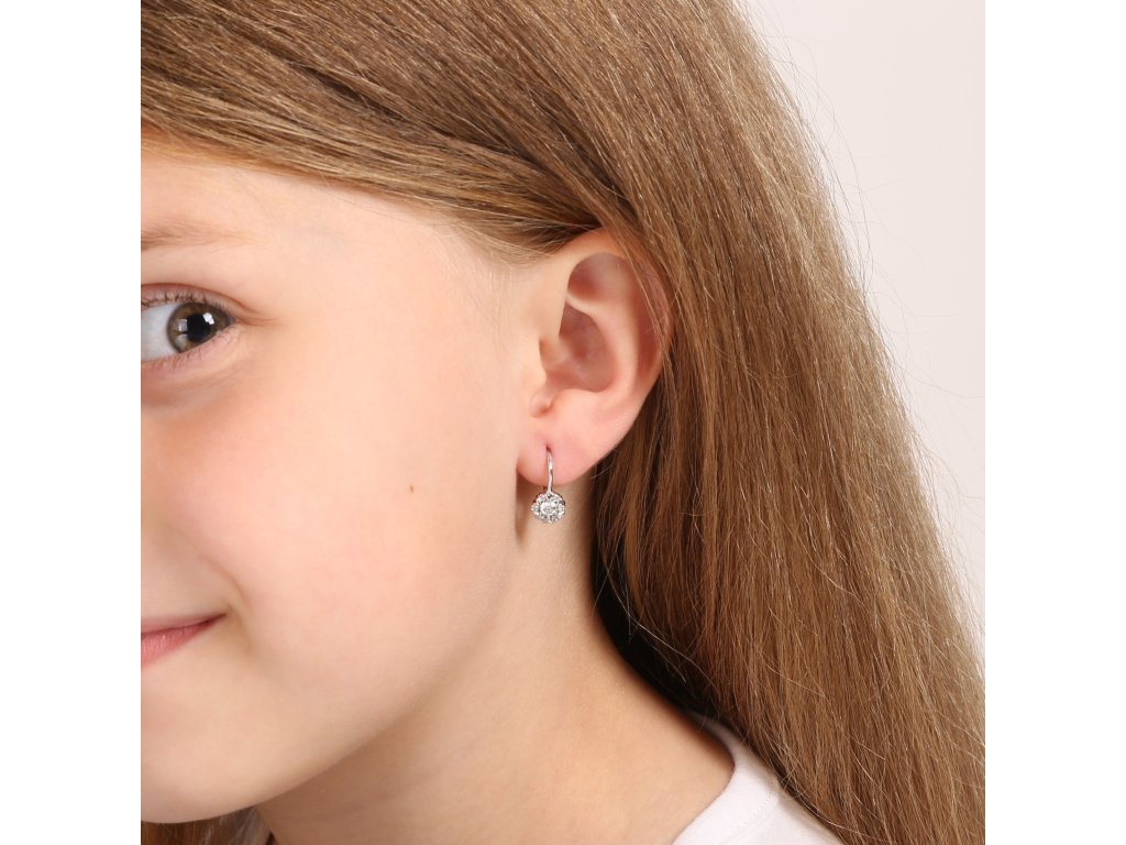 Stříbrné náušnice dětské kulaté se zirkony 11474.1 crystal