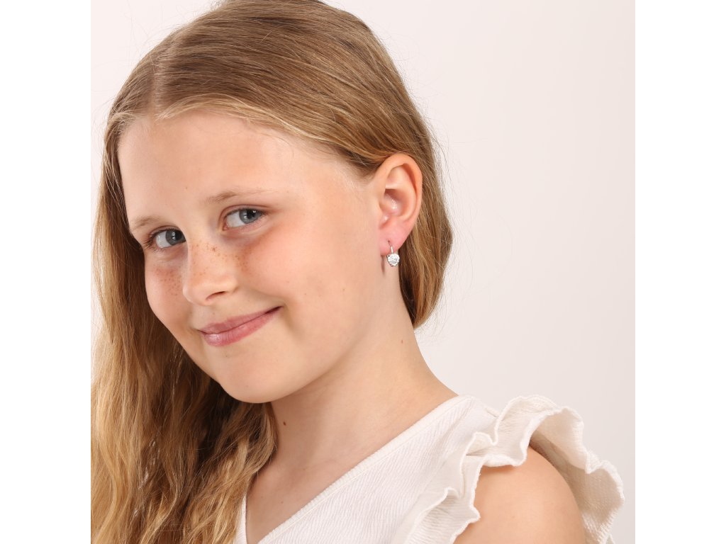 Sháníte roztomilé náušničky pro svou malou holčičku? Co třeba visací náušnice osázené třpytivými zirkony ve tvaru srdce.Visací náušnice 11473.1 jsou vyrobeny ze stříbra ryzosti 925/1000, jehož povrch je upraven rhodiem. Rhodium šperk ochrání proti zčernání, zežloutnutí nebo poškrábání. Náušnice mají délku 14 mm a každá z nich je osázena průzračnými zirkony. Náušnice mají zapínání na klapku. Šperk neobsahuje nikl, a tak se nemusíte obávat žádné alergické reakce.