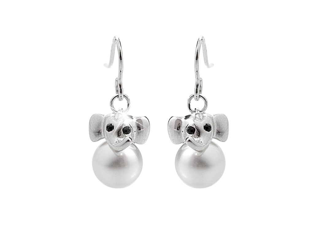 Stříbrné náušnice háčky ve tvaru slona ozdobené bílou perlou (Stříbro 925/1000)