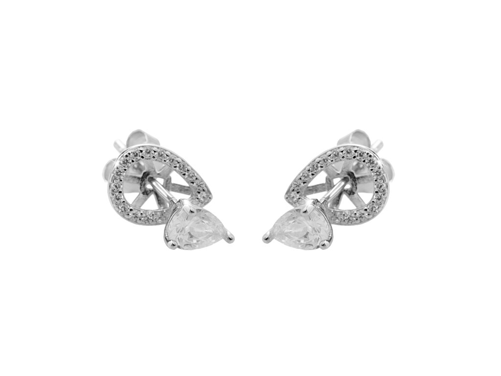 Stříbrné náušnice kapka z dvou částí s Kubickými zirkony Crystal (Stříbro 925/1000)