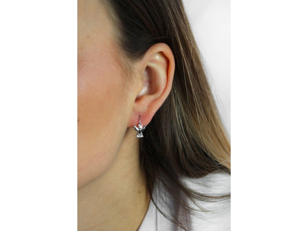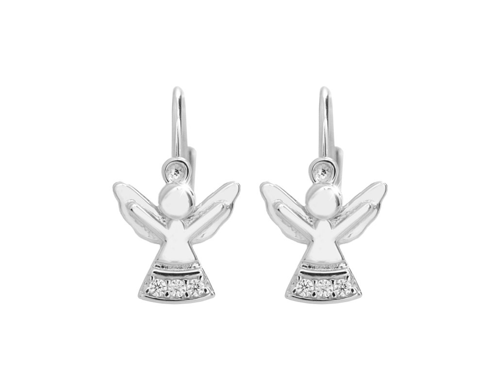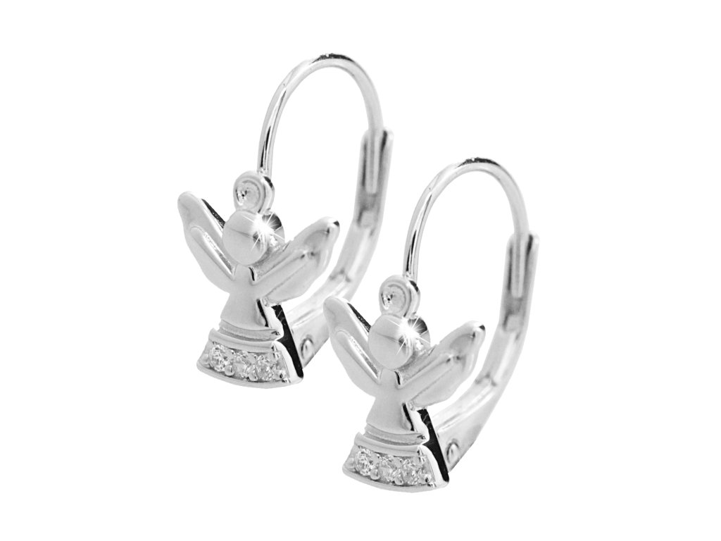 Stříbrné náušnice klapky andílek s Kubickými zirkony na sukni Crystal (Stříbro 925/1000)