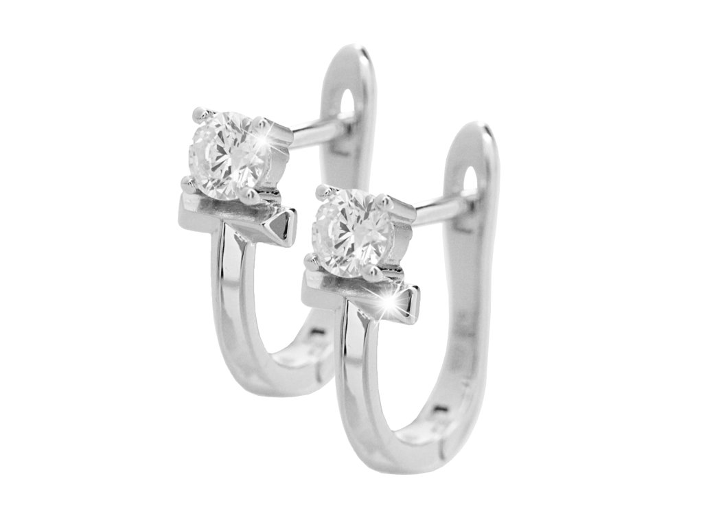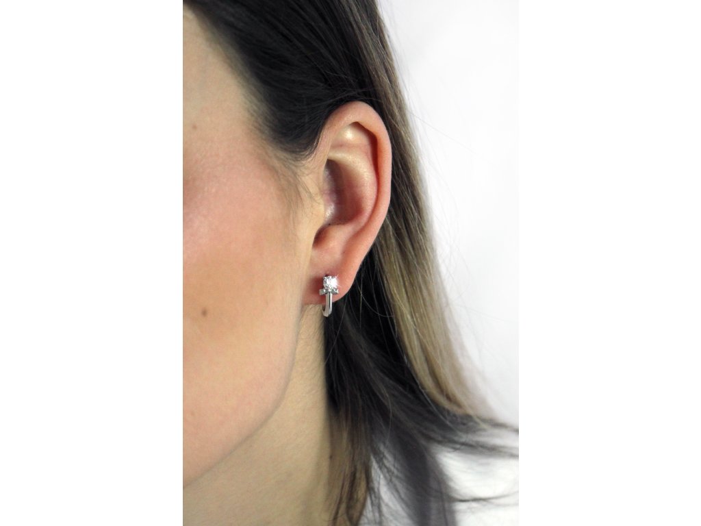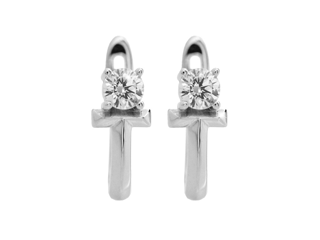 Stříbrné náušnice klapky jeden Kubický zirkon na kovovém téčku Crystal (Stříbro 925/1000)