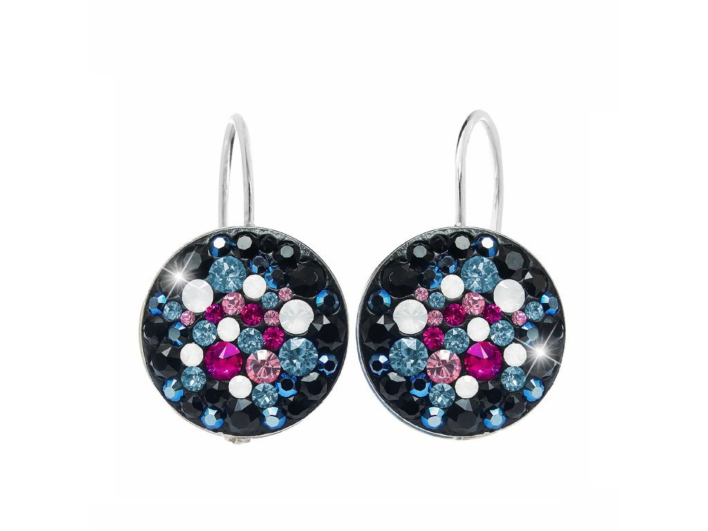 Stříbrné náušnice klapky kulaté lůžko s krystaly Swarovski Galaxy (Stříbro 925/1000)