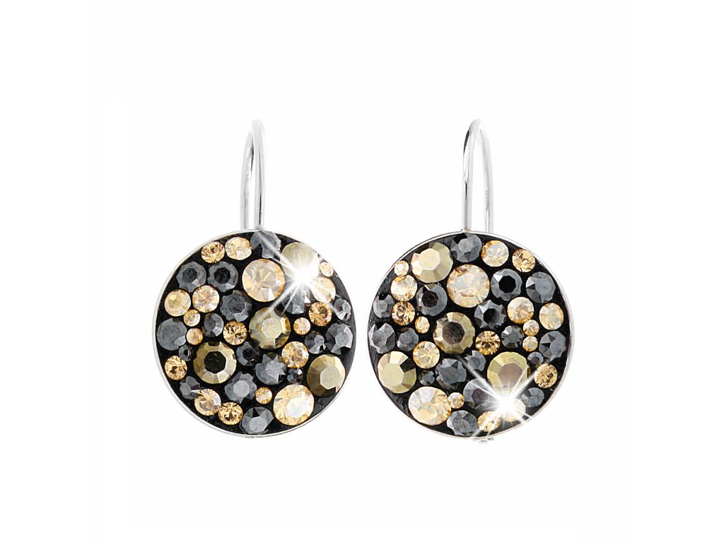 Stříbrné náušnice klapky kulaté lůžko s krystaly Swarovski Jet mix (Stříbro 925/1000)
