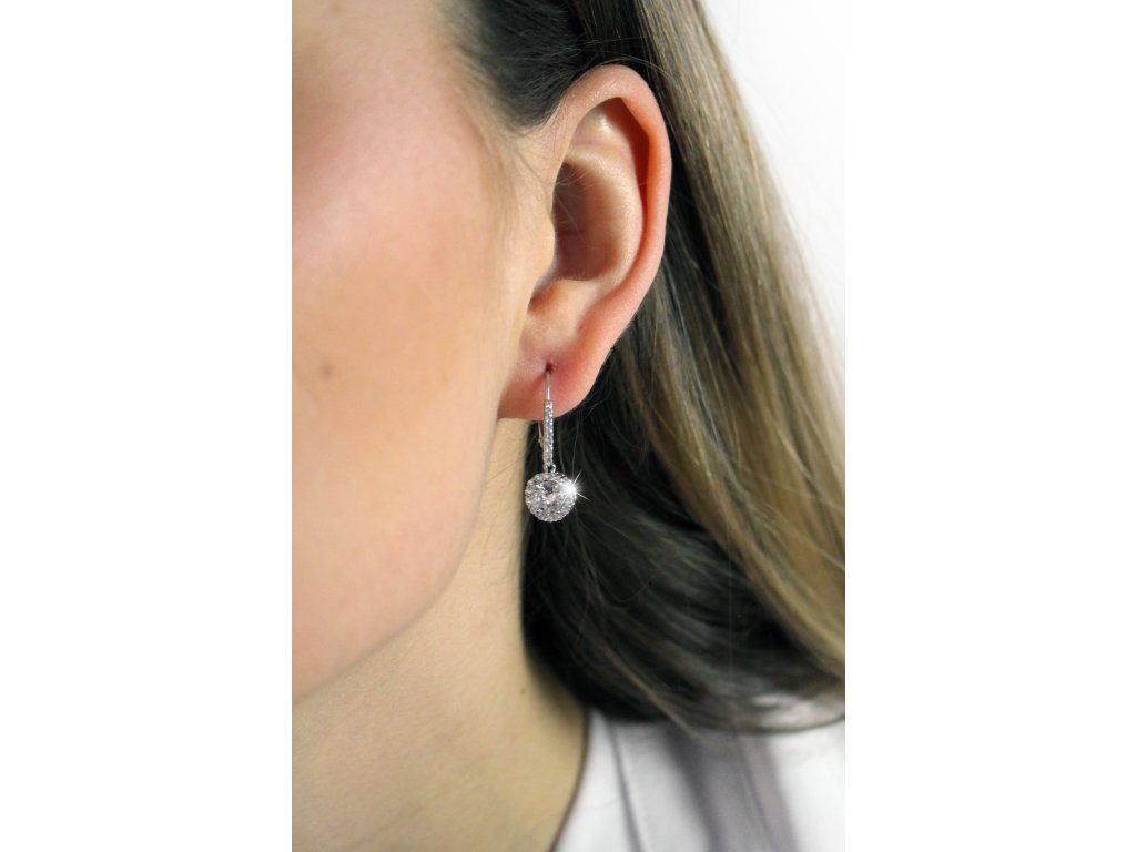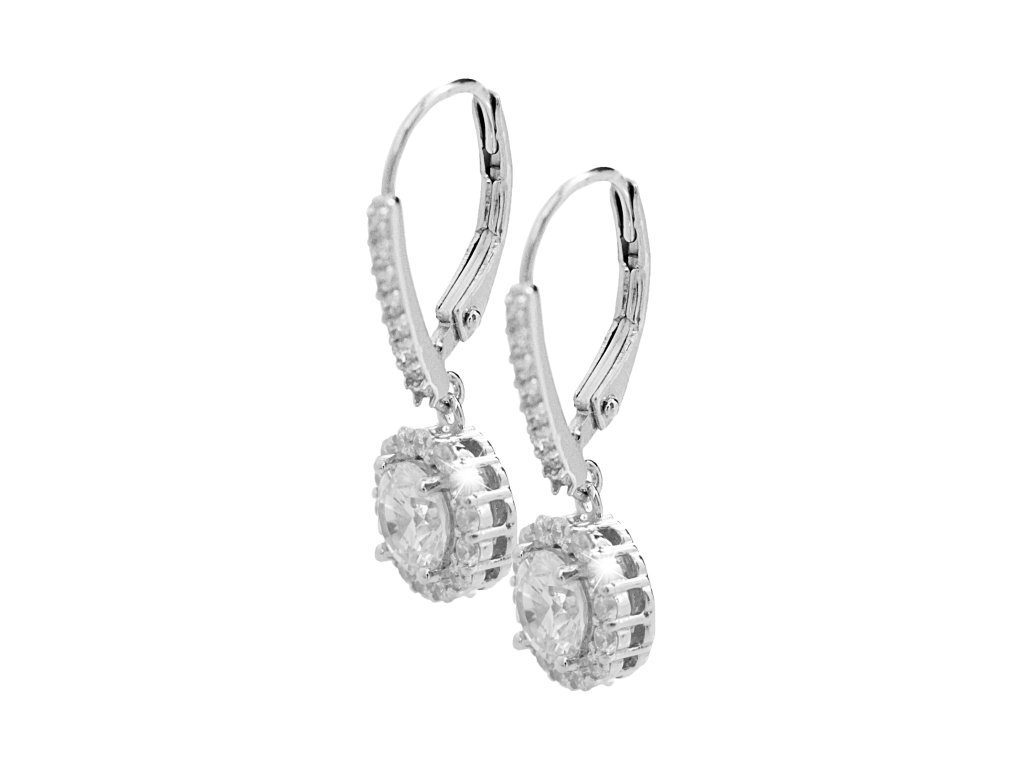 Stříbrné náušnice klapky květ z Kubických zirkonů Crystal (Stříbro 925/1000)