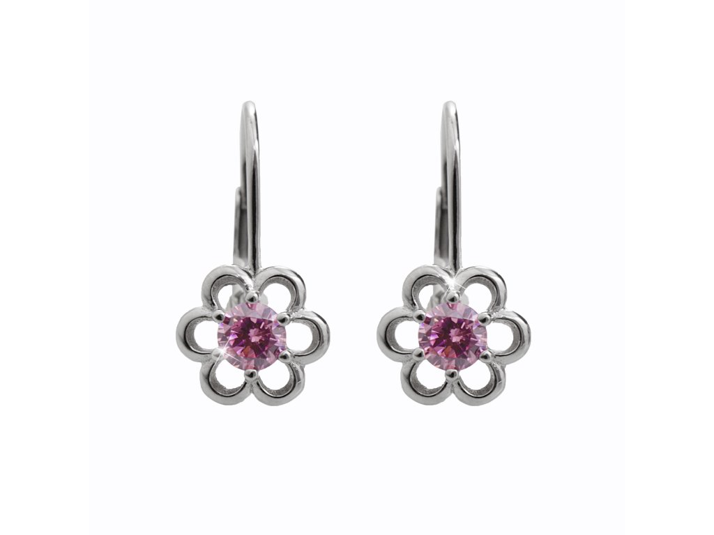 Stříbrné náušnice klapky kvítek s Kubickým zirkonem Rose (Stříbro 925/1000)