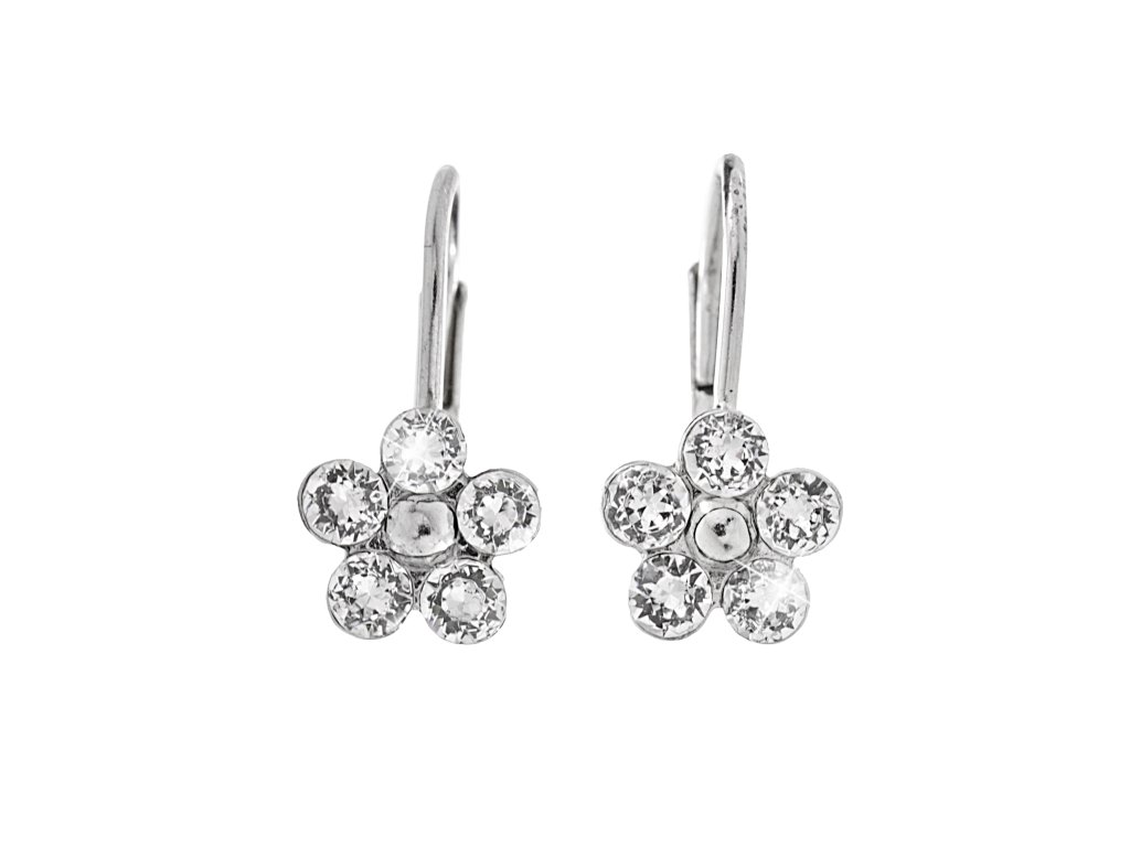 Stříbrné náušnice klapky kytičky a pět krystalů Swarovski Crystal (Stříbro 925/1000)