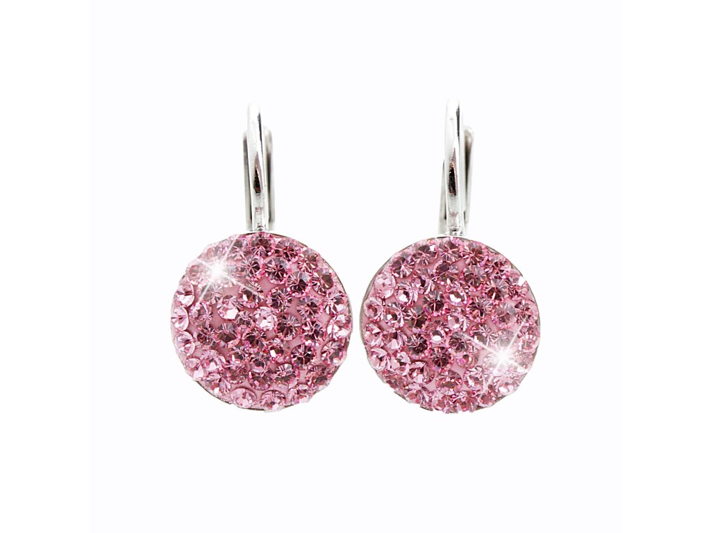 Stříbrné náušnice klapky lentilky s krystaly Swarovski Rose (Stříbro 925/1000)