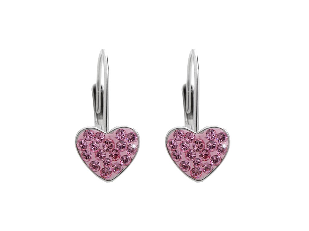 Stříbrné náušnice klapky malé srdíčko s krystaly Swarovski Crystal (Stříbro 925/1000)