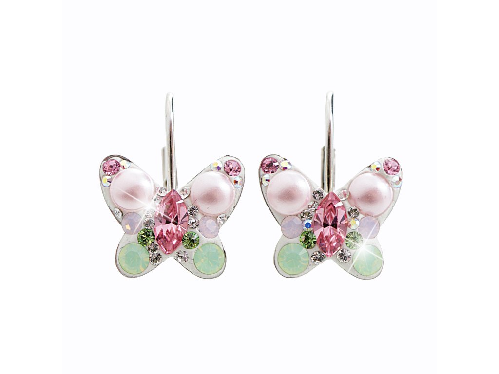 Stříbrné náušnice klapky motýl a krystaly Swarovski Multi střední (Stříbro 925/1000)