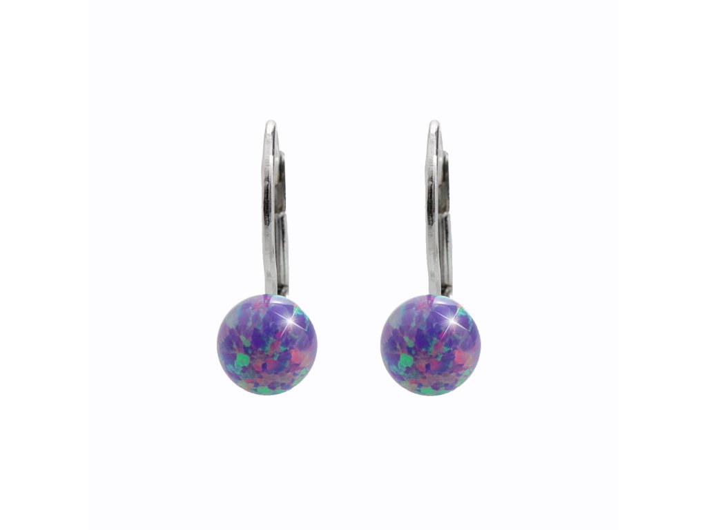 Stříbrné náušnice klapky opálová kulička Violet (Stříbro 925/1000)