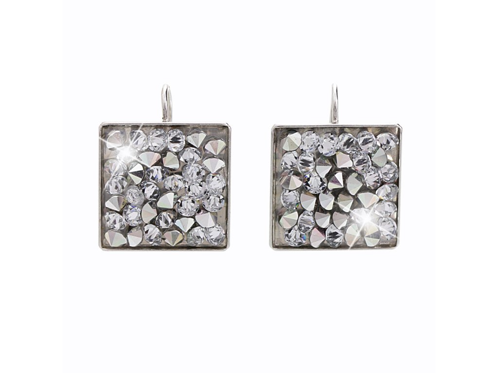 Stříbrné náušnice klapky s čtvercovým lůžkem s krystaly Swarovski Crystal (Stříbro 925/1000)