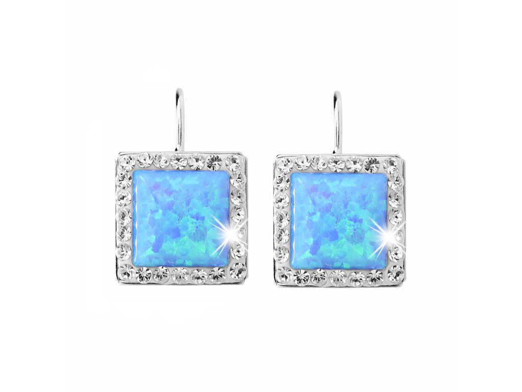 Stříbrné náušnice klapky s čtvercovým opálem a krystaly Swarovski Blue velké (Stříbro 925/1000)