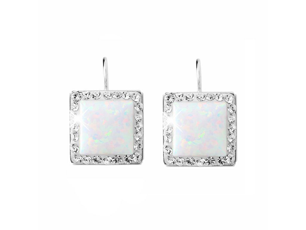 Stříbrné náušnice klapky s čtvercovým opálem a krystaly Swarovski White velké (Stříbro 925/1000)