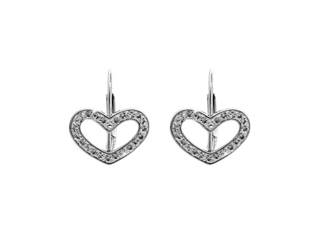 Stříbrné náušnice klapky s obvodovým srdíčkem a krystaly Swarovski Crystal (Stříbro 925/1000)