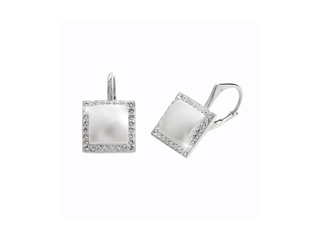 Stříbrné náušnice klapky s perlovým čtvercem a krystaly Swarovski Crystal velké (Stříbro 925/1000)