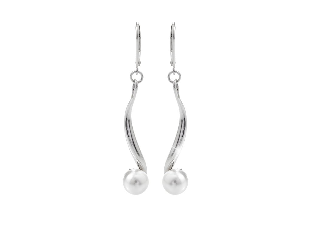Stříbrné náušnice klapky s přívěskem podlouhlé vlnky zakončené bílou perlou Swarovski (Stříbro 925/1000)