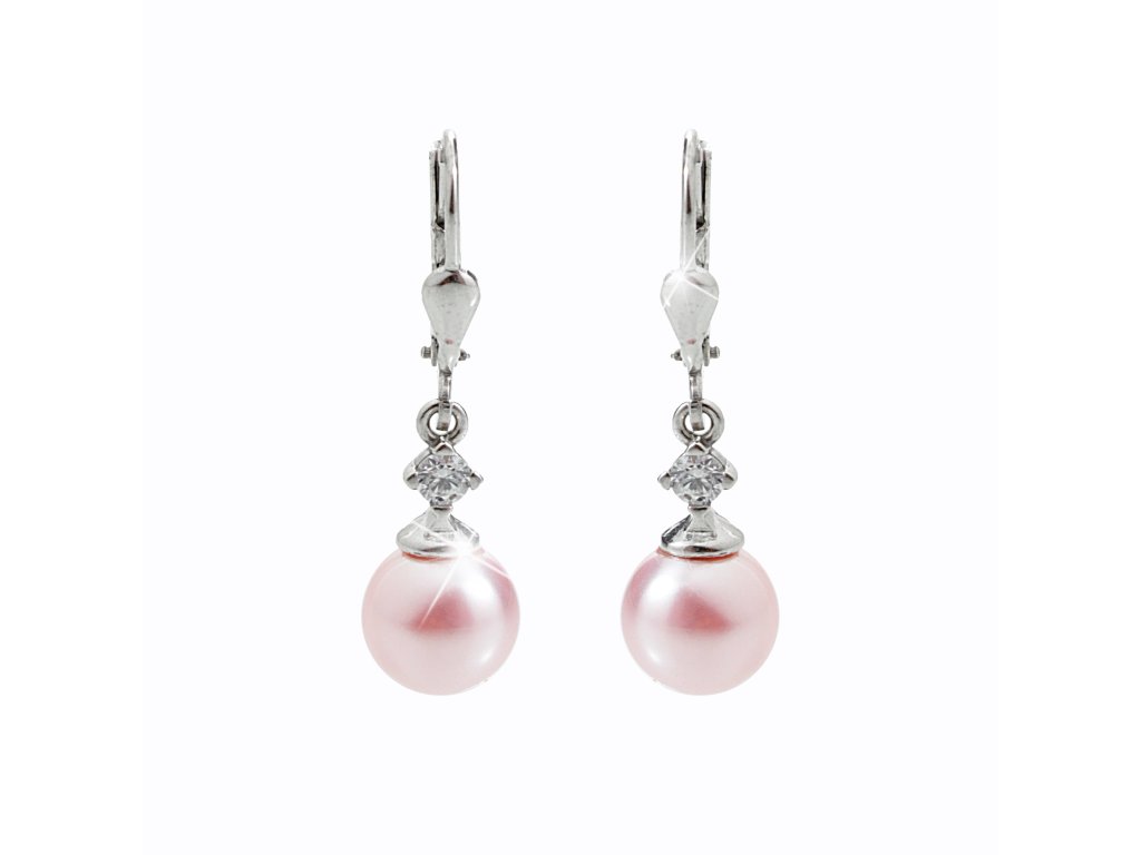 Stříbrné náušnice klapky s růžovou perlou nad ní zdobené krystaly Swarovski (Stříbro 925/1000)