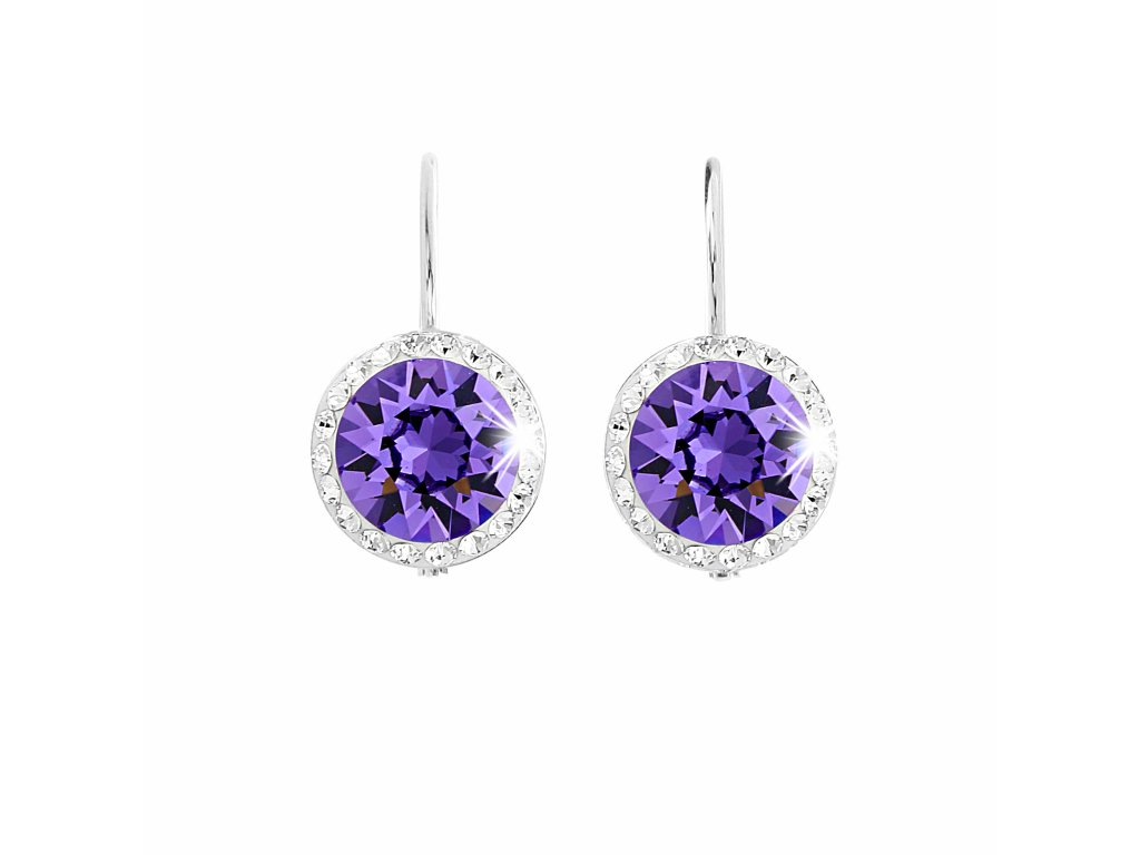 Stříbrné náušnice klapky s velkým krystalem a obtahem z malých krystalů Swarovski Tanzanite (Stříbro 925/1000)