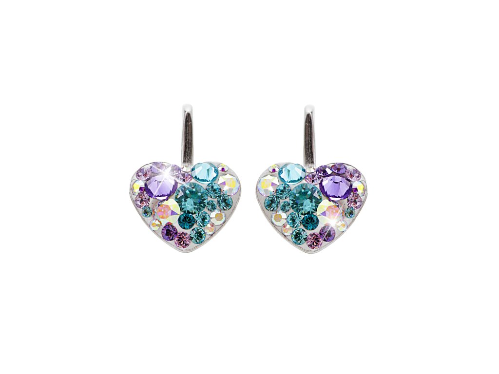 Stříbrné náušnice klapky srdce a krystaly Swarovski Purple malý (Stříbro 925/1000)