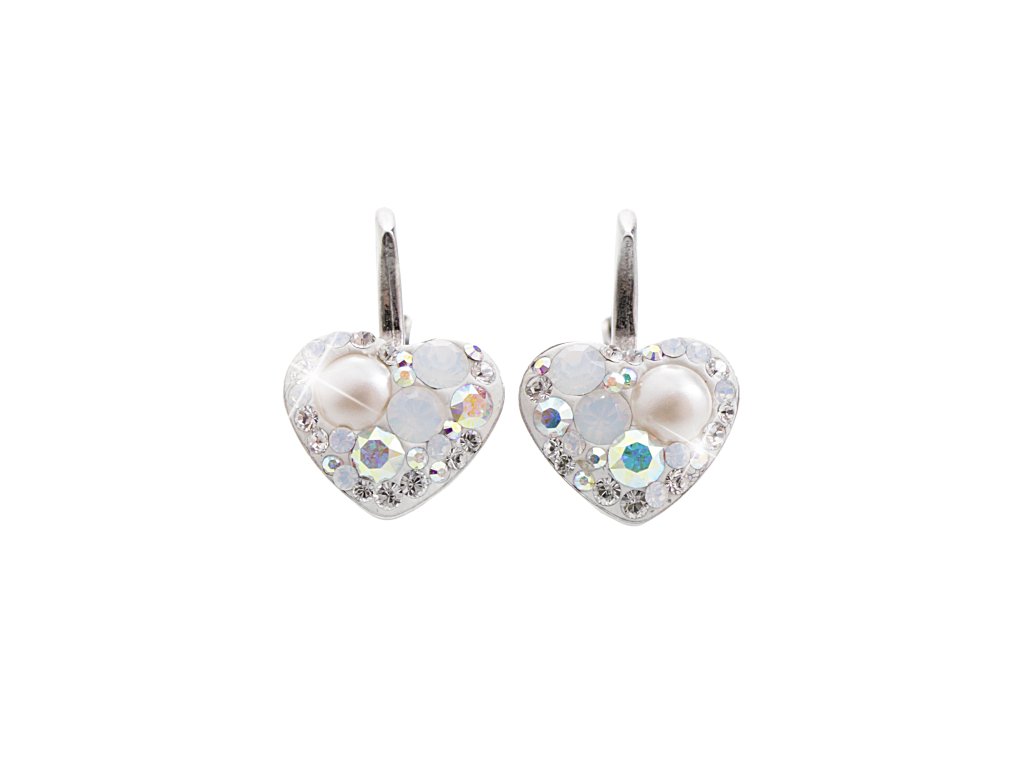 Stříbrné náušnice klapky srdce a krystaly Swarovski White malý (Stříbro 925/1000)