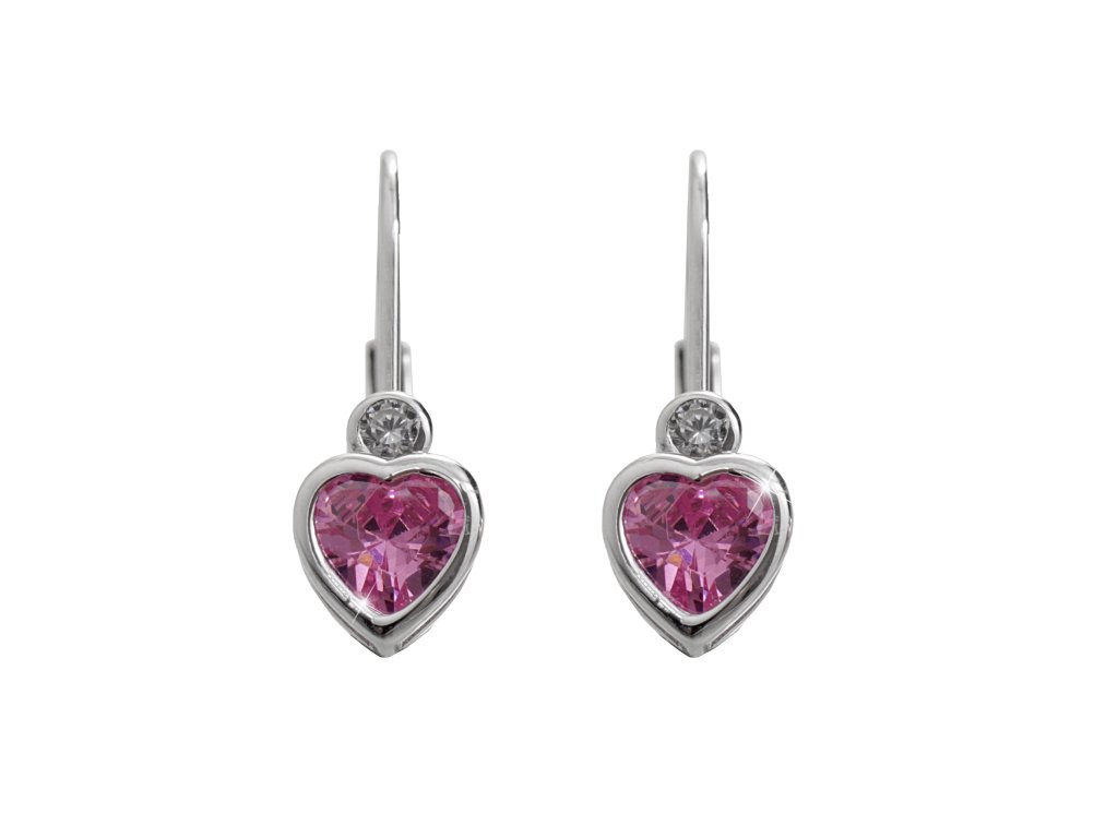 Stříbrné náušnice klapky srdíčko s Kubickým zirkonem Rose (Stříbro 925/1000)