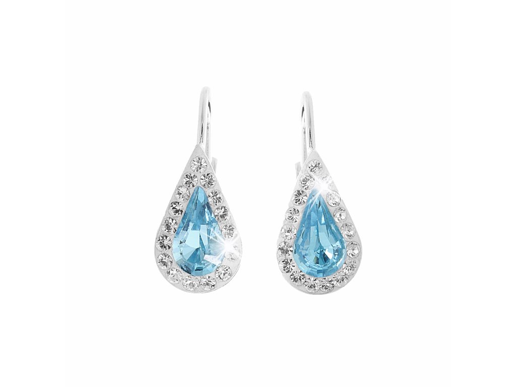 Stříbrné náušnice klapky Swarovski kapka s obtahem Aqua (Stříbro 925/1000)