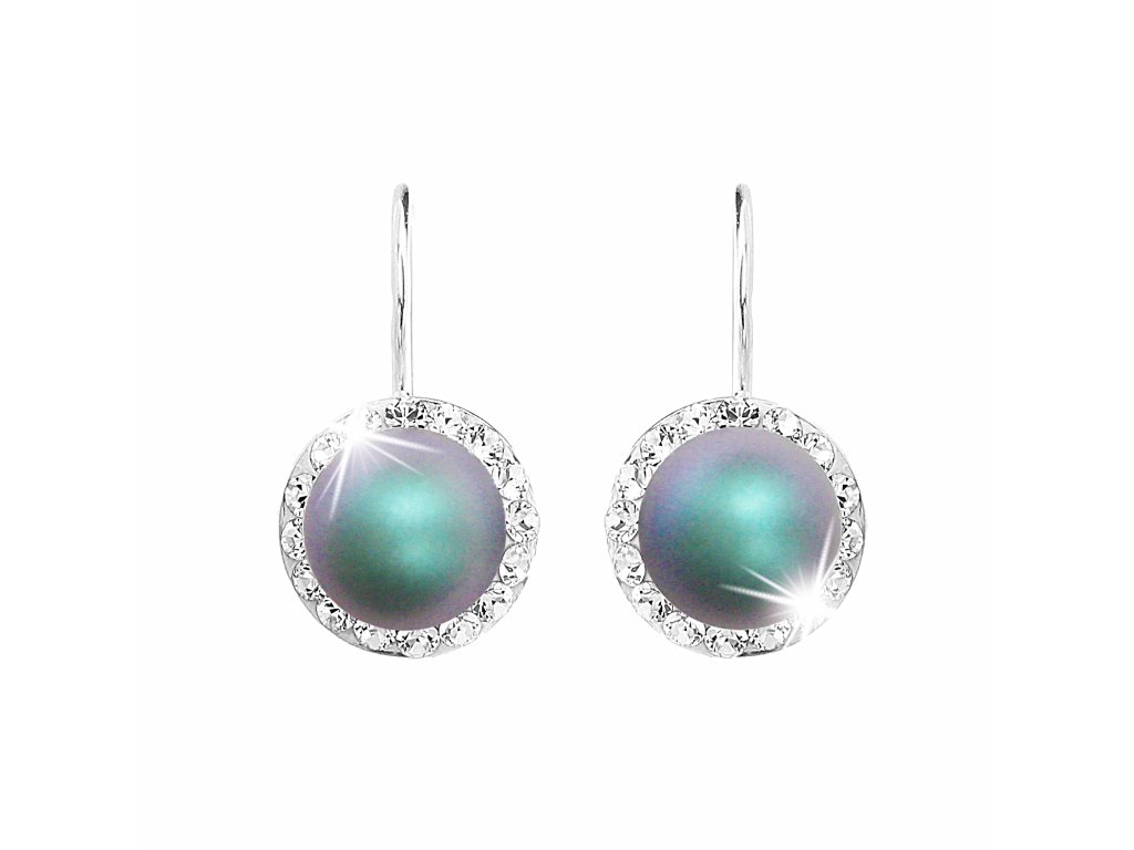 Stříbrné náušnice klapky Swarovski perla s obtahem Blue (Stříbro 925/1000)