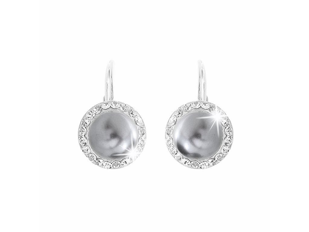 Stříbrné náušnice klapky Swarovski perla s obtahem White (Stříbro 925/1000)