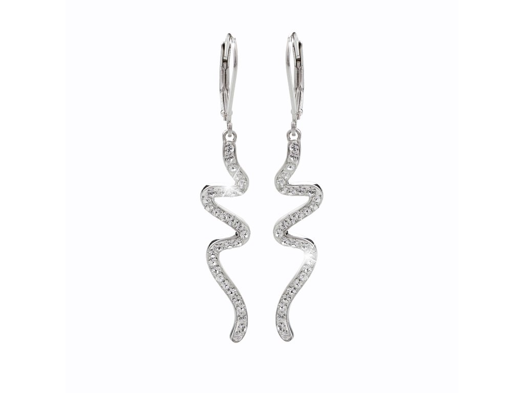 Stříbrné náušnice klapky ve tvaru dlouhé vlnky a krystaly Swarovski Crystal (Stříbro 925/1000)