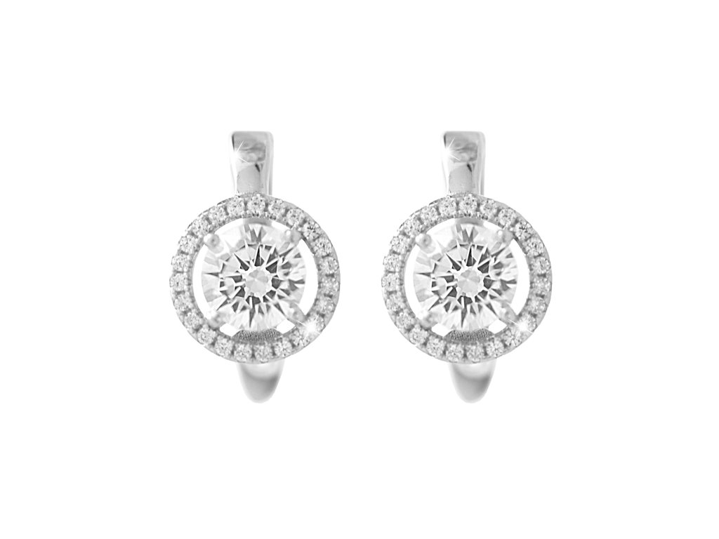 Stříbrné náušnice klapky velký kulatý zirkon a drobné Kubické zirkony kolem něj Crystal (Stříbro 925/1000)