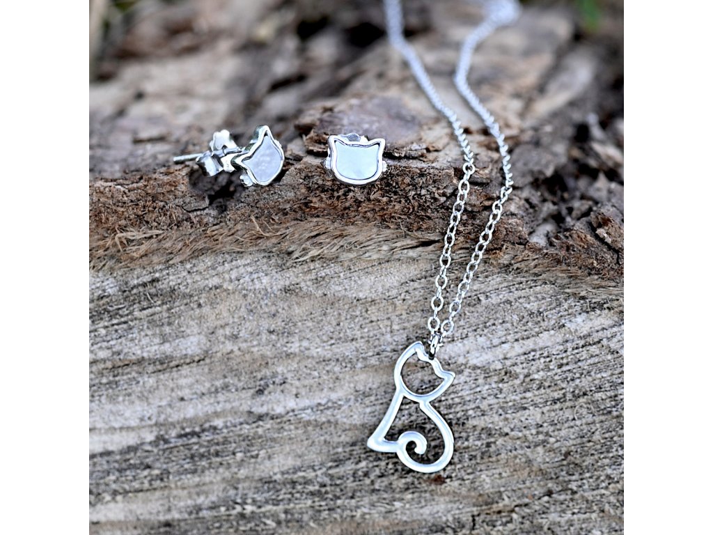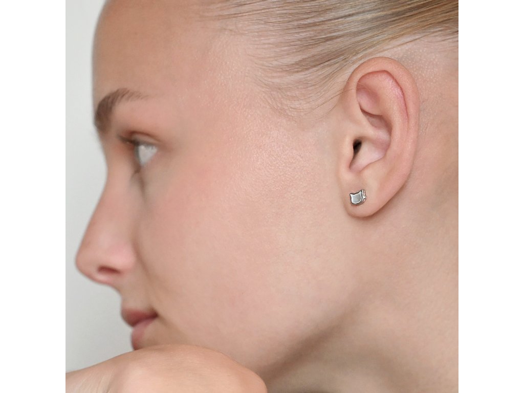 Stříbrné kočičí náušnice s precizně zpracovanými detaily a zapínáním na puzetu. Jemný perleťový lesk dodává tomuto šperku neopakovatelný půvab. Ideální pro ty, kteří chtějí vyjádřit svou lásku ke čtyřnohým společníkům.