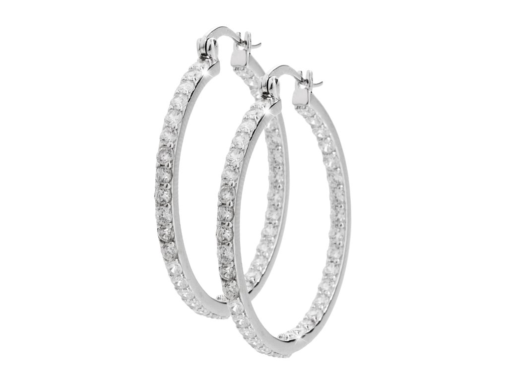 Stříbrné náušnice kreole větší s Kubickými zirkony Crystal po celém obvodu (Stříbro 925/1000)
