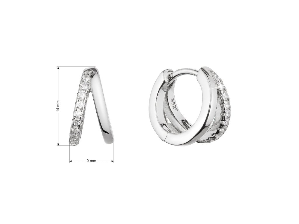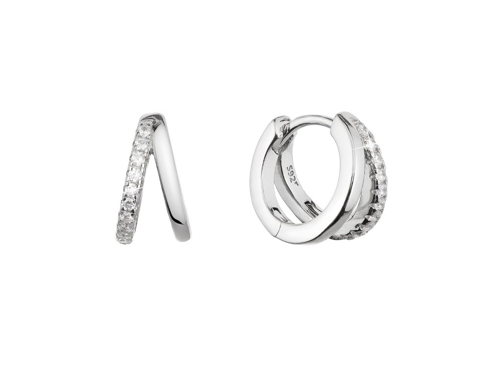 Stříbrné náušnice kroužky se zirkony v bílé barvě 11442.1