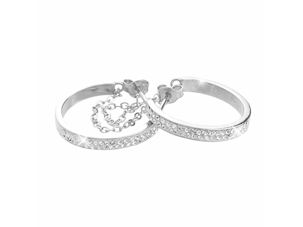 Stříbrné náušnice kruhy dvě řady krystalů Swarovski ozdobené řetízkem Crystal (Stříbro 925/1000)