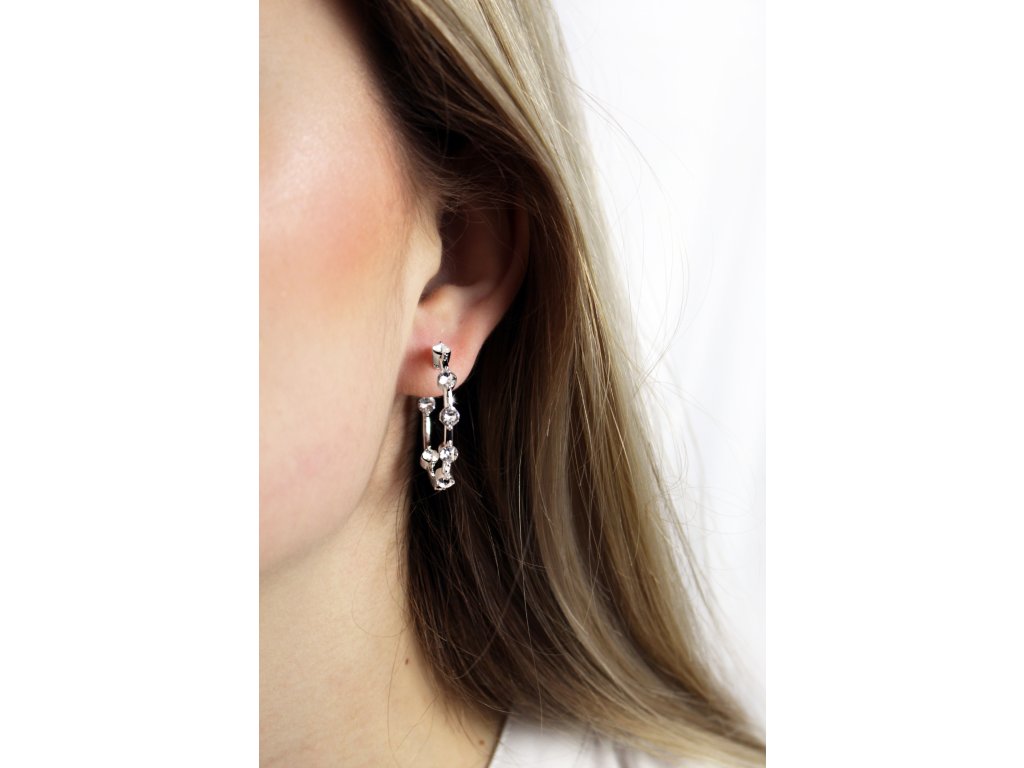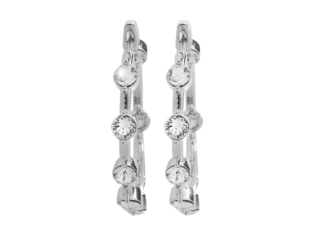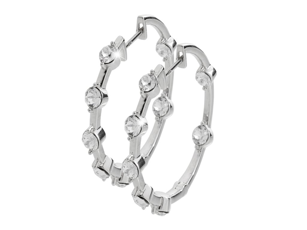 Stříbrné náušnice kruhy které zdobí krystaly Swarovski Crystal v rozestupech (Stříbro 925/1000)