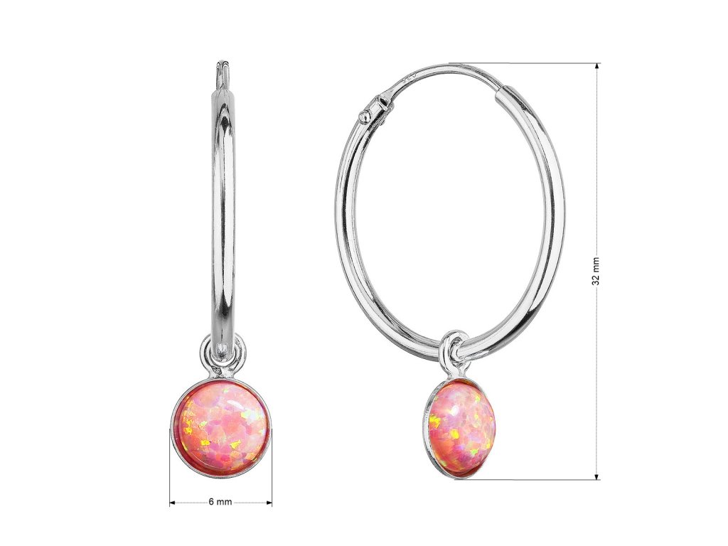 Parametry stříbrných visacích náušnic kruhy s korálovým syntetickým opálem 11401.3 coral
