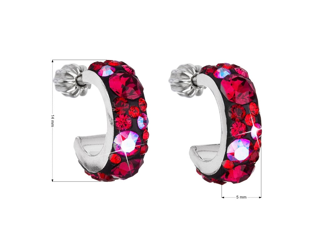 Parametry stříbrných kruhových náušnic s krystaly Swarovski červený půlkruh 31118.3 cherry