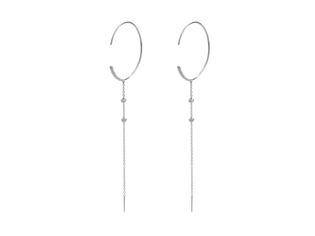 Stříbrné náušnice kruhy s řetízkem zdobené Kubickými zirkony Crystal (Stříbro 925/1000)