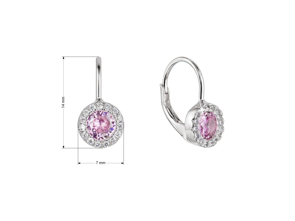 Kulaté stříbrné náušnice ocení především malé slečny, protože se krásně třpytí.Visací náušnice 11475.3 jsou vyrobeny ze stříbra ryzosti 925/1000, jehož povrch je upraven rhodiem. Rhodium šperk ochrání proti zčernání, zežloutnutí nebo poškrábání. Náušnice mají na středu růžový zirkon, který je bohatě osázený malými bílými zirkony po jeho obvodu. Náušnice mají zapínání na klapku. Šperk neobsahuje nikl, a tak se nemusíte obávat žádné alergické reakce.